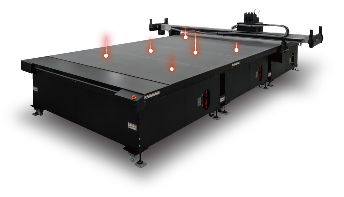 A precisão da altura da mesa é verificada automaticamente no momento da instalação e monitorada durante o corte.